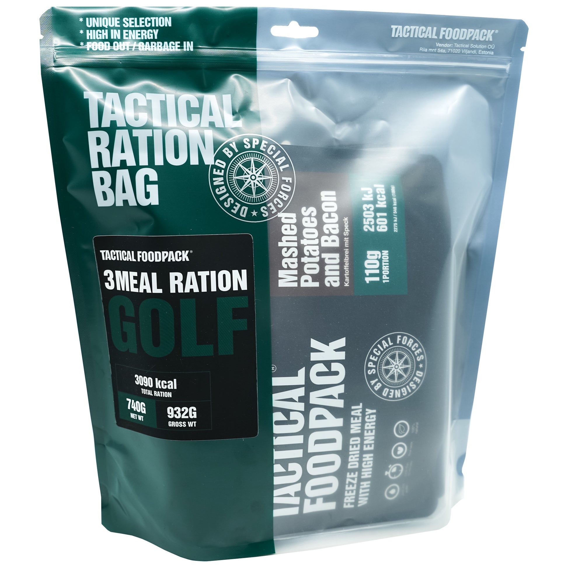 Tactical Foodpack rations Golf, Hotel and India are designed to help you plan your time and meals. The high-nutrition packs include three Tactical Foodpack meals and various snacks. You can make coffee or cocoa for a refreshing drink. Extras include a spoon, a tactical drinking cup and a tactical shower and disinfectant hand wipes are provided for personal hygiene. The ration bag is resealable. Tactical Foodpack is the best freeze-dried food for camping, hiking and outdoor adventures.